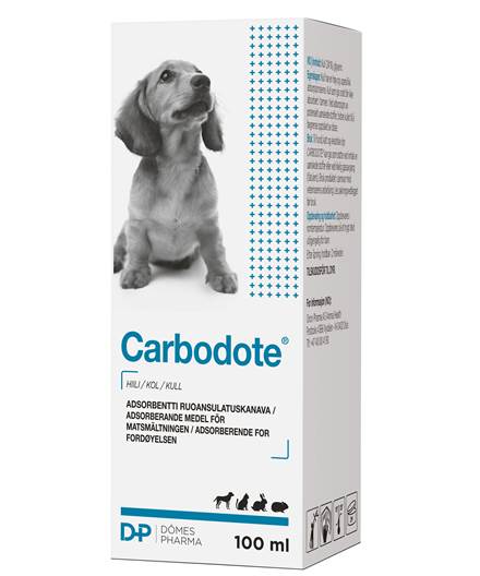 Carbodote on käyttövalmis liuos, joka on helppo annostella ruiskulla. Se sopii kaikille lemmikeille ja auttaa sopimattomien aineiden poistamisessa suolistosta ja ilmavaivojen yhteydessä.
